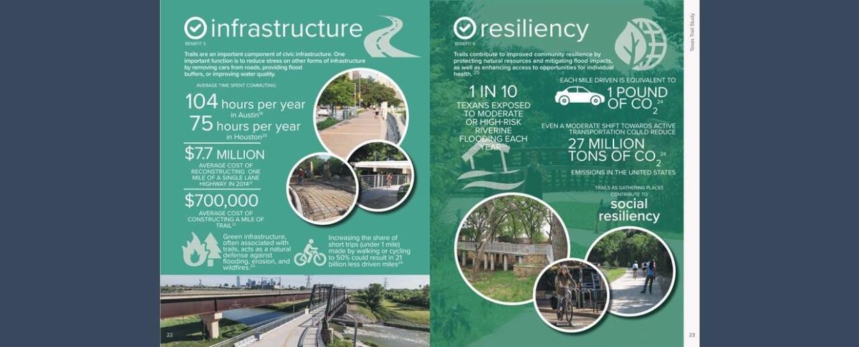 This study includes recommendations for the creation of a statewide trail plan strategy. Written in a highly graphic, easy-to-read format, the Texas Trails Study provides a broad overview of the benefits trails bring, including tangible and intangible benefits. The study focuses on how to assist potential partners as they encourage local and regional conservation efforts related to trails.